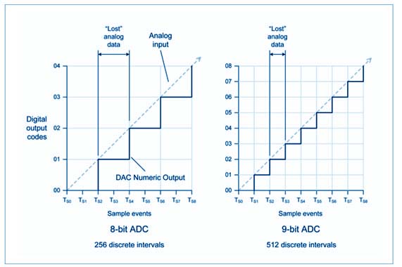 La cuantización introduce una limitación inherente en la precisión de la conversión. Cuanto mayor sea el número de niveles disponibles, menor será el error. Este número de niveles depende de la cantidad de bits del ADC. Por ejemplo, un convertidor de 8 bits puede representar 256 niveles distintos, mientras que uno de 10 bits puede representar 1024 niveles. Un ADC de 12 bits alcanza 4096 niveles, y uno de 16 bits llega a 65.536 niveles.