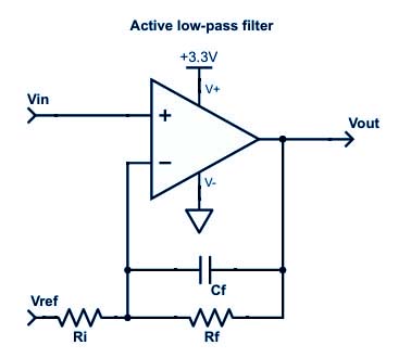 Un filtro pasa-bajos activo (active low-pass filter) puede implementarse a partir de un amplificador con realimentación negativa, incorporando una red formada por una resistencia y un capacitor en la realimentación. A bajas frecuencias, la impedancia del capacitor es alta, por lo que el circuito se comporta como un amplificador convencional. A altas frecuencias, la impedancia del capacitor disminuye, reduciendo la ganancia del sistema.