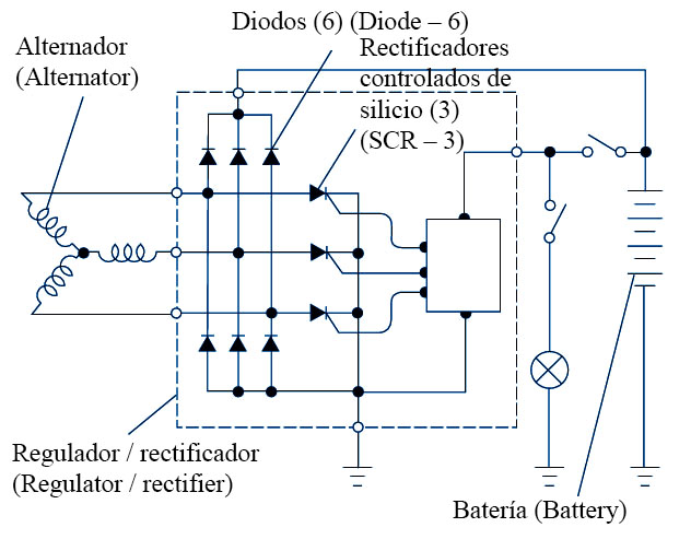 El regulador, por su parte, utiliza dispositivos como los SCR (rectificadores controlados de silicio) para controlar la tensión y la corriente suministradas al sistema eléctrico. Su función es evitar sobrecargas y proteger tanto a la batería como a los componentes electrónicos del vehículo.