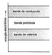 Fig. Diagrama típico de niveles de energía . Ver también : banda de conducción, banda prohibida, banda de valencia . |