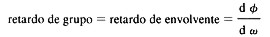 | Envelope delay, retardo de grupo; retardo de envolvente, demora del envolvente. (Electrónica - Electronics ), El tiempo que un punto particular de una señal tarda en atravesar un sistema o equipo. Es igual a la primera derivada del desplazamiento de fase respecto de la frecuencia angular ω. Entonces: