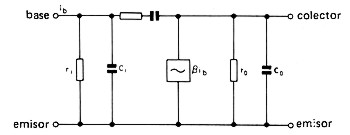 Fig. Ejemplo de un circuito equivalente de un transistor bipolar que puede utilizarse en radio-frecuencia .