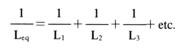 Para una sencilla red de inductancias L1, L2, L3, etc . en paralelo (y sin acoplo mutuo), la inversa de la inductancia equivalente Leq es igual a la suma de las inversas de las inductancias individuales, es decir:
