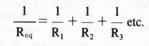 Req = R1 + R2 + R3 + .... Para una sencilla red de resistencias R1, R2, R3, etc ., en paralelo, la inversa de la resistencia equivalente es igual a la suma de las inversas de las resistencias individuales, es decir:
