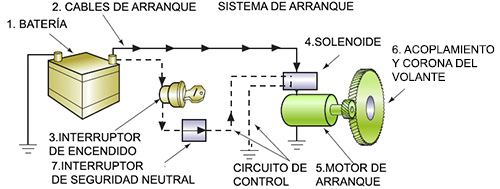 5. ARRANQUE: El interruptor proporciona corriente al circuito de control de arranque, sistema de encendido y circuitos de control del motor.