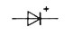 Junction diode, diodo de unión (Electrónica - Electronics ), Una unión pn, empleada a causa de su conductividad unidireccional. Estos diodos se usan ampliamente para rectificación, detección y en los circuitos digitales. El símbolo gráfico de un diodo de unión se indica en la figura siguiente : Fig. Símbolo gráfico de un diodo. El extremo marcado + es el que da positivo cuando el diodo conduce. |