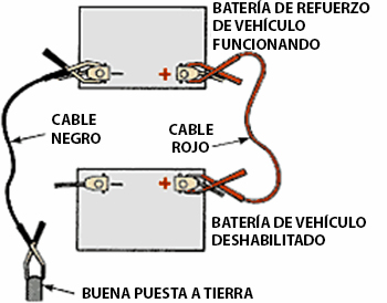 1. Asegúrese de que los dos vehículos no se toquen entre sí. El flujo de corriente excesivo a través de las carrocerías de los vehículos puede dañar las pequeñas correas de puesta a tierra (masa) que unen el bloque del motor al bastidor. Estos cables pequeños están diseñados para transportar solo 30 amperios. Si los vehículos se tocan, se pueden transportar hasta 400 amperios a través de ellos.