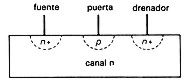 Fig. Diagrama simplificado que muestra la estructura de un transistor de efecto de campo de puerta de unión de canal n.