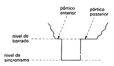 | Line sync signal, señal de sincronismo de línea (Electrónica - Electronics ) En TV, la señal transmitida al final de cada línea de exploración para iniciar el retorno horizontal del haz en receptores, permitiendo así que la exploración se efectúe de manera sincronizada en el receptor y en el transmisor. En la mayoría de los sistemas de TV, esta señal consiste en un pulso comprendido entre el nivel de borrado y el de sincronismo, como se muestra en la figura siguiente cuyo flanco anterior sincroniza la base de tiempos de líneas del receptor.