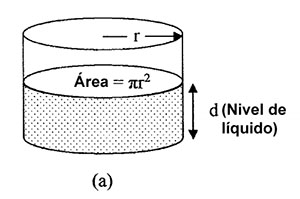El peso de un contenedor se puede utilizar para calcular el nivel del material en el contenedor. En la figura 1a, el volumen V del material en el recipiente viene dado por