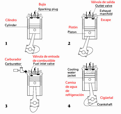Este ciclo es repetido muchas veces por segundo. El pistón móvil hace que el cigüeñal rote a gran velocidad .