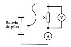 El circuito elemental de la figura siguiente puede servir para analizar cómo la corriente que pasa por el conductor X depende de la diferencia de potencial aplicada.