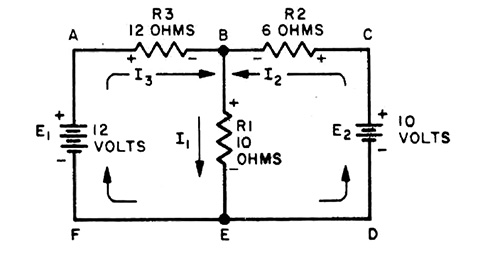 Una simplificación de las leyes de Kirchhoff es el método que hace uso de corrientes de malla o de circuito. Una malla es cualquier trayectoria cerrada en un circuito. No importa que el recorrido contenga una fuente de voltaje. Al resolver un circuito mediante corrientes de malla, primero debemos decidir las trayectorias que serán las mallas.