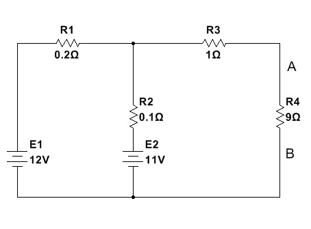 VAB = I3.R4 = 1,13 . 9= 10.17 V