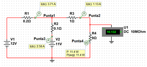 Este también está suministrando a la malla B una corriente de 1,13 A (I3).