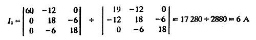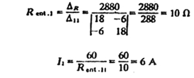 La corriente incógnita I1 se obtiene como la razón de dos determinantes. El determinante en el denominador tiene los elementos de la matriz de resistencia. Este puede referirse como determinante de los coeficientes y se le da el simbolo ΔR. El determinante en el numerador tiene los mismos elementos que ΔR excepto en la primera columna, donde los elementos de la matriz de voltaje reemplazan a los del determinante de coeficientes. De esta manera