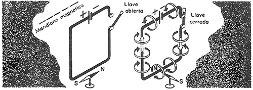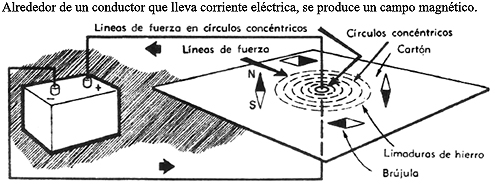 En 1819, Hans Christian Oersted, fisico danés, observó que las indicaciones direccionales de una aguja magnética colocada cerca de los conductores circulares atravesados por una corriente eléctrica (CC) eran perturbadas. La presencia o ausencia de la corriente, asi como la dirección del flujo en el alambre, sumaban un efecto mayor sobre la desviación de la brújula. Experimentos de otros científicos hicieron llegar a la condusión de que la corriente eléctrica produce un campo magnético, o una zona de energía magnética. Estos fueron los comienzos del electromagnetismo,