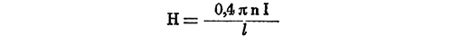 la expresión de la intensidad de campo en el interior del solenoide, en función de la intensidad de corriente que lo recorre, el número de espiras y su longitud, H, resulta en gauss, o líneas por cm2 si se toma I en Amper y l en cm.