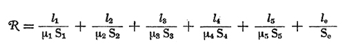 La reluctancia magnética total, o sea la dificultad que oponen los trozos de cada material colocado en el camino de las líneas de fuerza al recorrido de las mismas, será igual a la suma de la reluctancia de cada trozo, es decir: