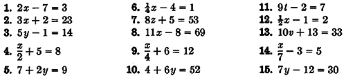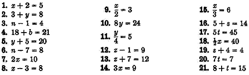Summary. In the preceding work in this chapter, you have learned to solve simple equations by adding, subtracting, multiplying, or dividing both members of an equation by the same number. We shall next consider some equations where we will need to use more than one of these methods to solve each equation.