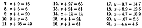 Solve each of the following equations by adding the same number to both members of the equation: