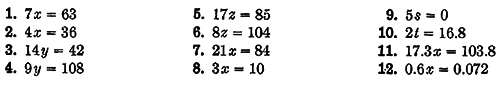 Solve each of the following equations by dividing each member of the equation by the same number: