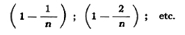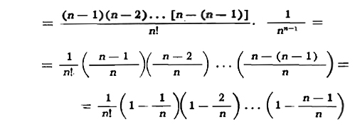 se hacen cada vez más pequeñas, de modo tal que cuando n se hace infinitamente grande, dichas fracciones se hacen tan pequeñas que pueden considerarse igualadas a cero; en consecuencia los factores