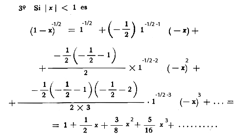 Extensión de la fórmula de Newton para el caso en que el binomio es de la forma (1 +x) y el exponente es entero y negativo o fraccionario.