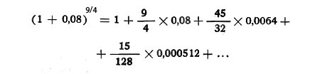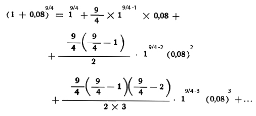 Como i, o sea el tanto por 1, es siempre un número menor que la unidad, generalmente del orden de los centésimos y a veces del orden de los décimos, puede aplicarse la fórmula de Newton para el cálculo de la potencia, cualquiera sea el valor del exponente n.