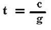 En cuanto al tiempo que ha de ser: t = c/g, se tiene