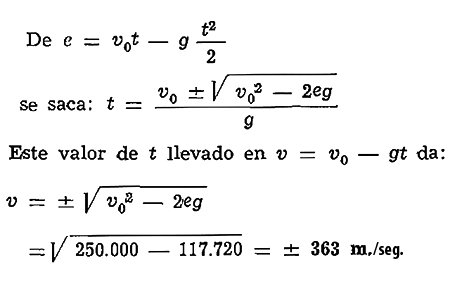 La velocidad a la altura de 6.000 m. es, pues, de 363 m/seg tanto en la subida