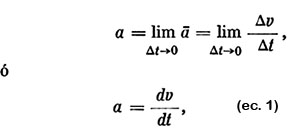 Aceleración media e instantánea. La aceleración es la razón entre la variación (Δv) de velocidad y la variación correspondiente (Δt) del tiempo.