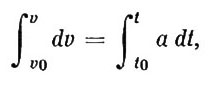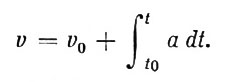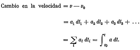 son los valores de la aceleración en cada intervalo de tiempo, y el cambio total v - v0 de la velocidad entre t0 y t es la suma de éstos. Esto es,