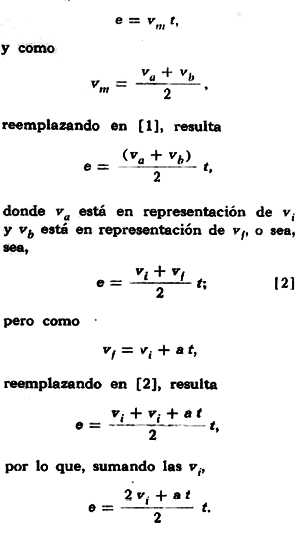 Por lo tanto, el espacio recorrido por un móvil con movimiento uniformemente acelerado es igual a la velocidad inicial por el tiempo, más un medio de la aceleración por el cuadrado del tiempo.