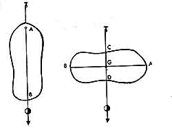 2º Procedamos en forma similar suspendiendo la lámina por el punto C (fig. 21). En esta nueva posición, en representa la vertical del lugar, que marcamos sobre la lámina.