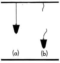 Figura 14. La fuerza de gravedad hace que el hilo se ponga tenso (a); si éste se corta, el cuerpo cae.