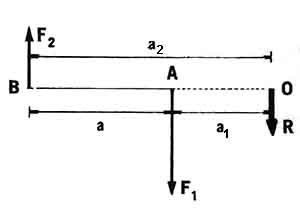 lo cual nos permite decir que la resultante entre dos fuerzas paralelas de sentido contrario divide al segmento que une las fuerzas en segmentos (sustractivos) inversamente proporcionales a dichas fuerzas: o sea, a mayor fuerza corresponde menor segmento, y a menor fuerza, mayor segmento.