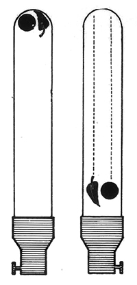 Inventada la bomba de vacío, Newton (1642-1727) realizó el siguiente experimento: dentro de un tubo de vidrio (fig.19), de aproximadamente un metro de largo, colocó una pluma de ave y un trocito metálico; extrajo el aire por medio de una máquina de vacío; invirtiendo el tubo, comprobó que ambos cuerpos (pluma y metal) llegaban simultáneamente al otro extremo del tubo. De este modo ratificaba en forma más técnica lo ya realizado por Galileo.