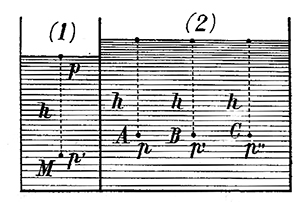 De la fórmula p' - p = hd, suponiendo p' la presión en el punto M y p la presión en la superficie libre del líquido, o sea p = 0, se tiene :