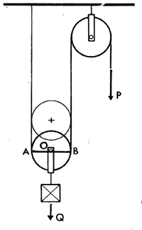 Figura2. Polea fija: P. potencia; Q. resistencia; O punto de apoyo (eje); r. radio de la polea