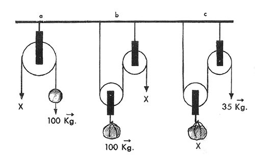 En todos los casos de equilibrio de poleas hemos considerado despreciable el peso de las poleas.