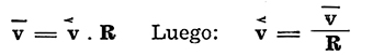 Sea v la velocidad angular, cuyo vector es mV'; como el radio R es igual a 1, tenemos: