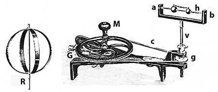gran rueda o volante G, provista de un manubrio M, que por medio de una