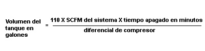 Otra parte del sistema de suministro de aire es el tanque de almacenamiento. La capacidad del tanque de almacenamiento, expresado en galones ( o metros cúbicos), debería ser lo suficientemente grande como para estabilizar los picos de carga intermitentes.