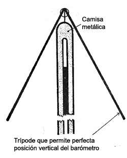 suspendiendo el barómetro de un trípode. Además, el tubo está "encamisado" y deja ver la columna