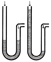 Están basados en la ley de Boyle y Mariotte. Constan de un tubo en U, cerrado en uno de sus extremos (fig. 4), de 2 ramas desiguales, una está está cerrada y contiene aire; la menor comunica con el recipiente cuya presión se busca y presenta una dilatación A.
