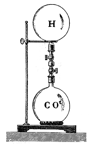 globos de igual volumen puestos en comunicación por medio de un tubo estrecho (figura 7). El globo superior contenía hidrógeno, y el globo inferior anhídrido carbónico a la misma presión y temperatura. Ambos globos fueron colocados en los sótanos del Observatorio de París, al abrigo de todas las