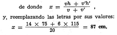 Problema 2º. Se ponen en comunicación dos globos de vidrio que contenían respectivamente v = 14 litros, de gas a la presión h = 75 cm., y v’ = 6 litros. de otro gas a la presión h’ = 115 cm. ¿Cuál será la presión de la mezcla.?