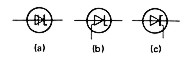 Fig. Simbología electrónica de tiristores de conducción inversa (a) diodo (b) triodo de puerta n y (c) triodo de puerta p.