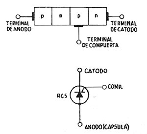 El RCS es un dispositivo de 3 electrodos y 4 capas, según la figura . Se comporta como rectificador convencional en el sentido inverso, bloqueando la tensión aplicada e igual a una llave a transistores en el sentido directo, vale decir, bloqueando la tensión aplicada hasta que se inyecta un pulso de magnitud suficiente en el electrodo de compuerta .
